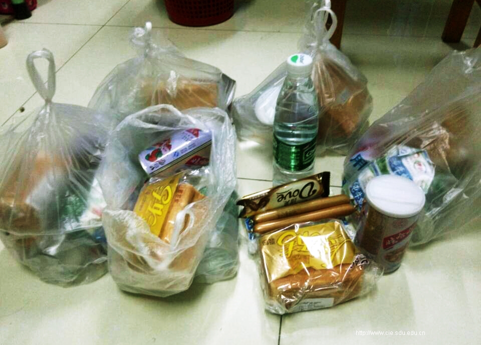 最近在许多山大学生中在流传着一种说法——“国教好福利”。单看此次校运会beat365英国官网本科生们在赛场外的待遇,就能略知一二了。学院为参加运动会的每位师生准备了“能量包”,面包牛奶巧克力等等应有尽有,让每个国教人能够精力充沛地投入到运动会的活动中。运动会期间学院专车接送,让大家的兴隆山之行更加便捷愉快。如此贴心的福利怎能不让别人心生艳羡?