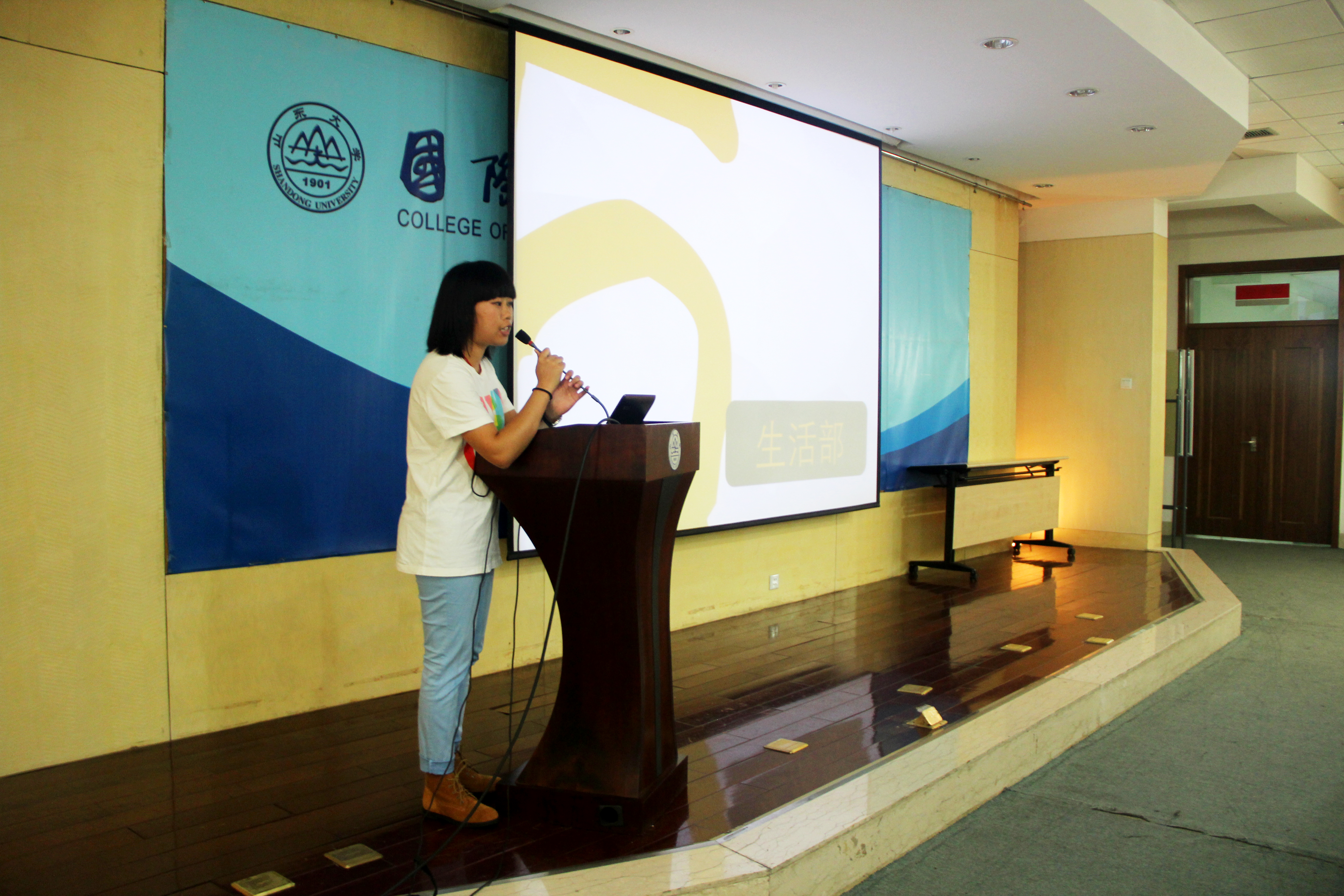 “I Want You!”在院学生会主席黄天妮简单介绍完学院学生会的创建时间及基本构架之后,宣讲活动正式开始。各部门经过精心的准备,以各具特色的PPT和真诚的讲述向新生们依次介绍自己的部门。文体部部长唐蓓蓓在介绍主办的第十三届国际文化节、学院春季趣味运动会等大型活动时,引来新生的阵阵称赞和掌声。社会实践与志愿服务部部长瞿伊馨向大家展示了一年来做过的志愿服务活动,并鼓励大家一起加入社实部,在活动中锻炼自我,奉献爱心。秘书处秘书长董怡璇制作了一个富有创意的PPT:“圆小脸”的故事,给大家讲述了自己一年在秘书处的成长,虽然也有苦有累,但是还是感到很充实很开心。学习部、传媒部、生活部、国际事务部等部门也都分别进行了精彩的宣讲活动。