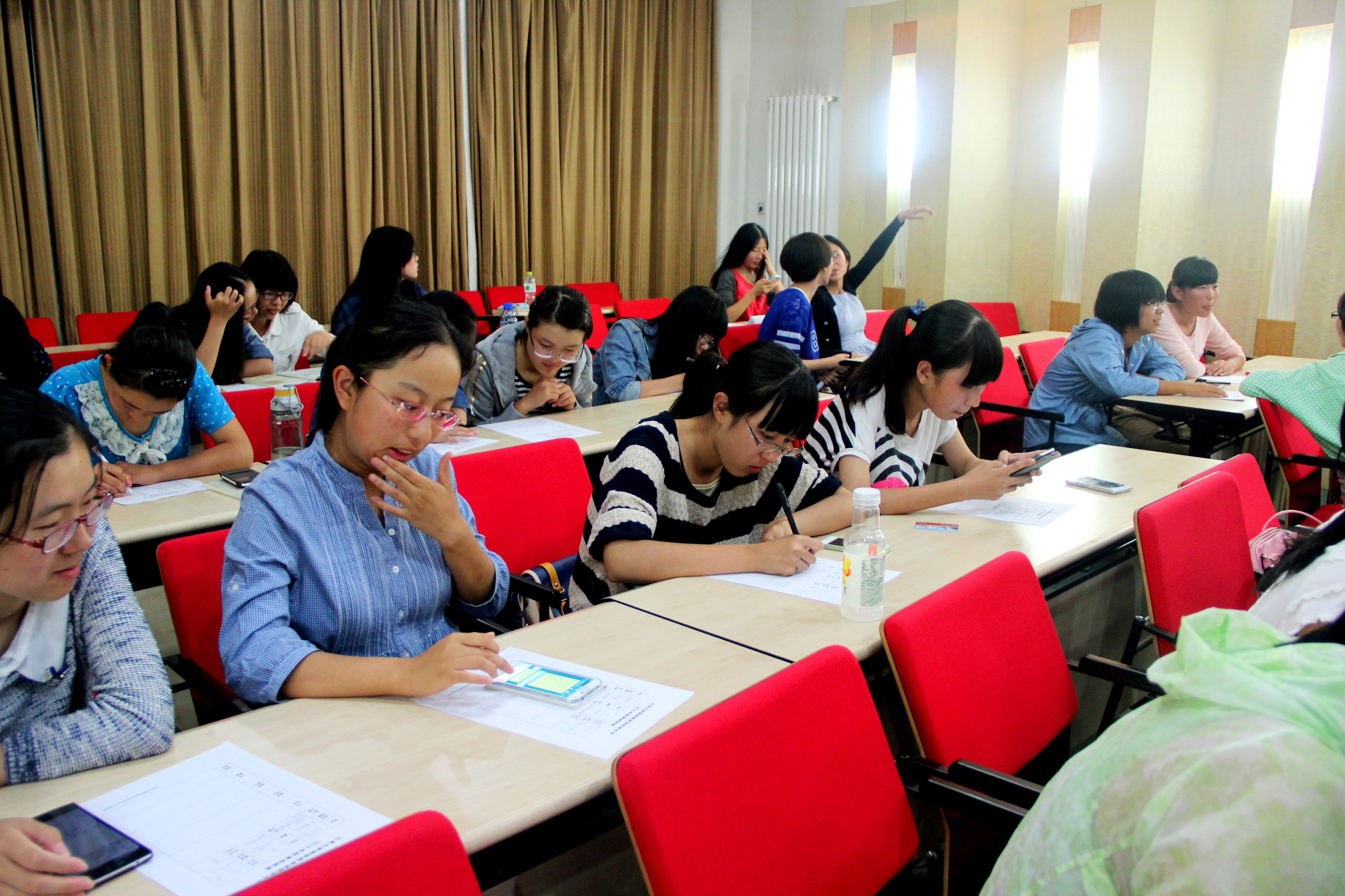 在各部门的宣讲活动结束以后,现场进行了纳新和面试活动。大一新生们依据自己的喜好,填写了自己心仪的部门并且进行了面试。在此期间,小小的报告厅在活力四射的音乐的衬托下变成了一个华丽的舞台。