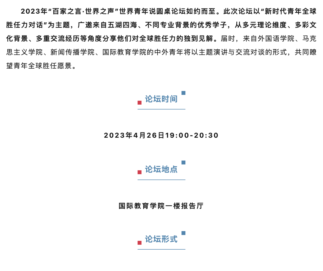 世界青年说——“新时代青年全球胜任力对话”圆桌论坛预告